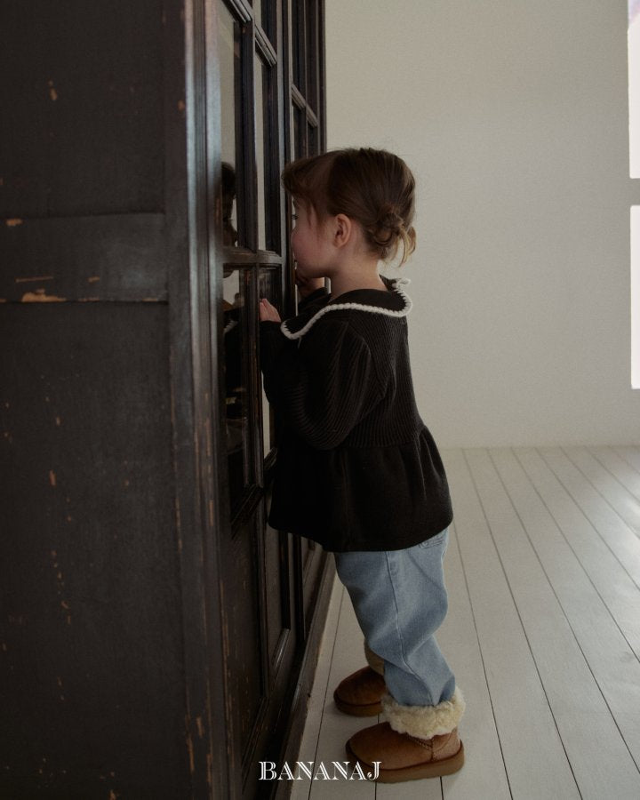 【予約】ribbon waffle collar T / bananaj (XS-JS)